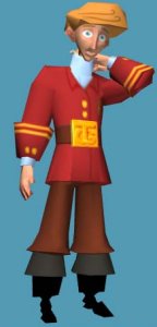 Yatta! They're both... like, leaning or something. FYI, this Guybrush pic is Jamie's favourite because she says it's cute in an ugly way. |